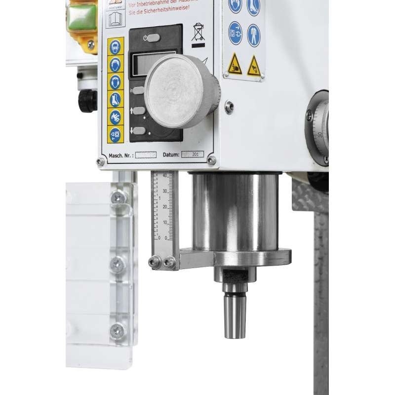 La perceuse fraiseuse KF16LVario est une machine compacte équipée de série d’un affichage digital de vitesse de rotation et de profondeur de la broche.