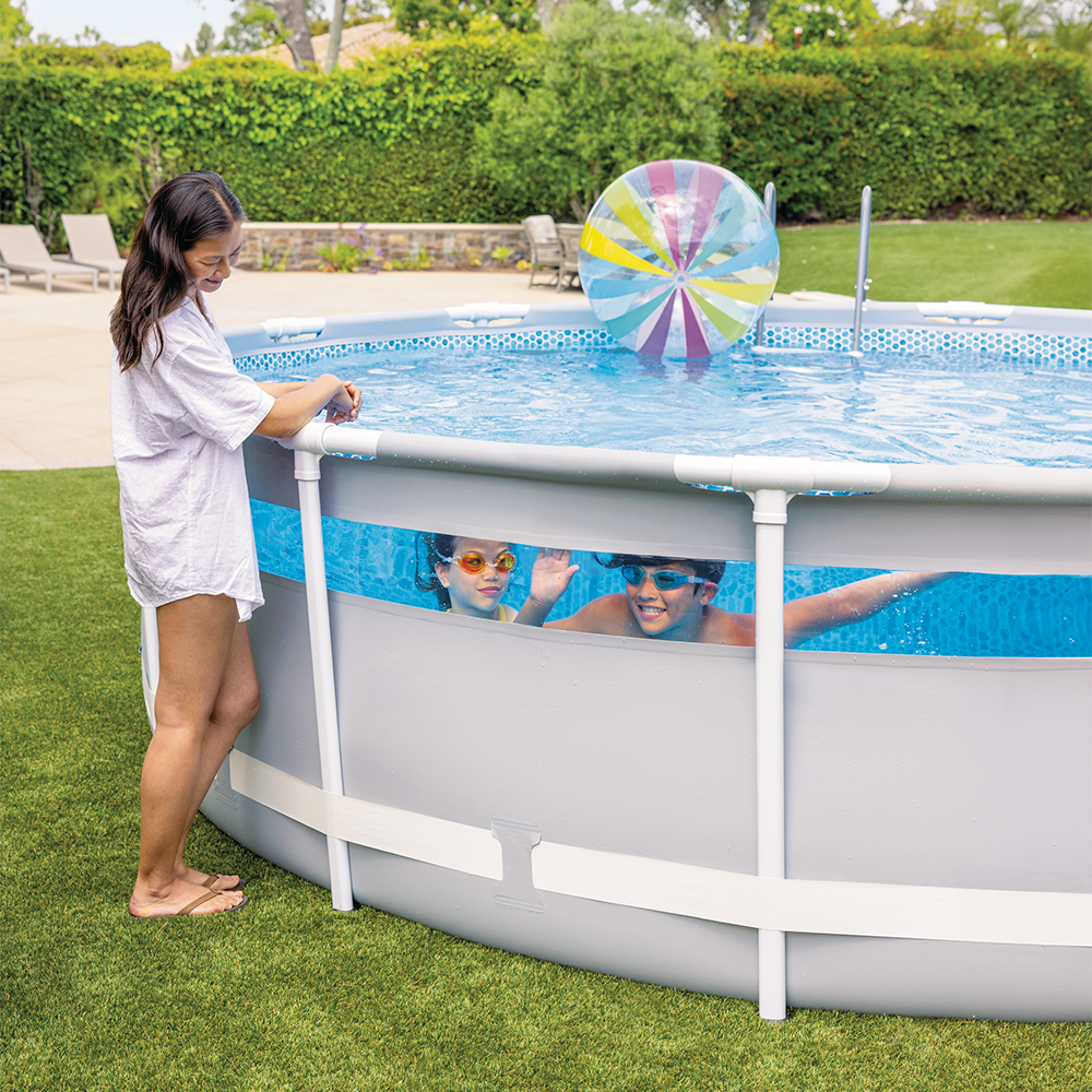 Sa grande bande transparente panoramique offre une vue sous l’eau depuis l’extérieur comme depuis l’intérieur du bassin. Un effet visuel original qui amuse les enfants et rend chaque baignade plus interactive. Avec son diamètre de 4,27 m et sa hauteur de 1,07 m, elle propose des dimensions idéales pour profiter d’un bel espace de baignade tout en s’intégrant facilement dans votre jardin.