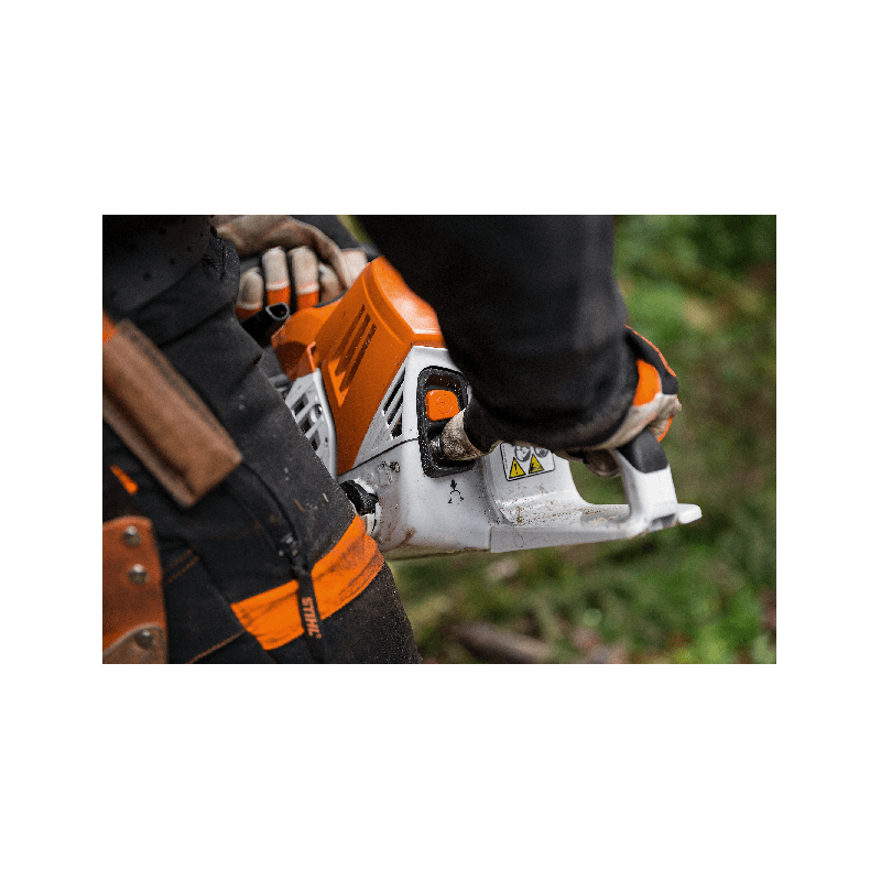 Véritable innovation, la STIHL MS500i est la première tronçonneuse au monde dotée d’un système d’injection à commande électronique. Lors de la récolte de gros bois, cette machine puissante est facile à manier pour découper le bois. Grâce à son accélération vertigineuse et à son comportement dynamique pour le changement de direction de coupe, la MS 500i est parfaitement adaptée non seulement à l’abattage et la découpe, mais également à l’ébranchage. Le dosage de carburant effectué par capteur garantit une puissance moteur optimale et un démarrage exceptionnel, quelles que soient la hauteur et la température ambiante. La suppression du levier de démarrage garantit en outre un démarrage des plus simples dans toutes les conditions d’utilisation. Grâce à la technologie de moteur révolutionnaire pour les tronçonneuses et la conception légère et intelligente en résultant, on obtient le meilleur rapport poids-puissance du marché : 1,24 kg/kW.